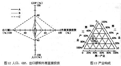 4、综合题 图12和图13是我国三大经济地带的有关资料,读图回答问题。(8分)
