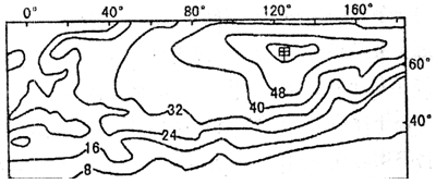 【小题1】图示气温年较差等值线的分布:由南向北递增,由沿海向内陆递增