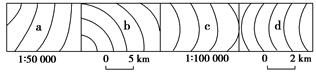【小题2】若四幅图中等高距相同,则a、b、c、d四处坡度大小比较正确的是( )