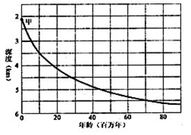 5、单选题 读图(纵坐标表示海底深度,横坐标表示海底地壳岩石年龄),下列地区所处的板块边界与甲处类似的是