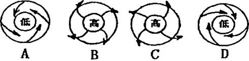 1、单选题 我国东南沿海地区夏、秋季节多台风,图中能正确表示北半球台风气流状况的是