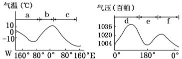 2、综合题 该图是沿北纬60°的一月份气温分布曲线和气压分布示意图,读后完成下列各题。(20分)