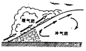 冷气团主动向暖气团移动的锋叫冷锋。冷气团前缘插入暖气团下部,使暖气团被迫抬升,水汽在上升冷却过程中成云致雨。冷锋过境时,会出现大风,云层增厚和雨、雪天气。冷锋过境后,冷气团占据原来暖气团位置,气温下降,气压上升,天气转好。我国北方夏季的暴雨,冬春季节的大风或沙暴天气,以及冬季的寒潮,属冷锋天气。