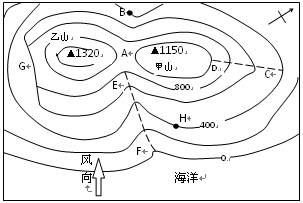 小题2:B点此时的温度为18℃,如果只考虑高度因素,