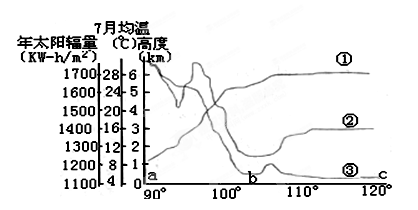 1、单选题 下图为我国沿30°N几种地理参数随经度的变化趋势示意图,读图回答问题。