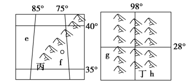 1、单选题  下图中甲、乙、丙、丁表示四条著名山脉。读图回答题。