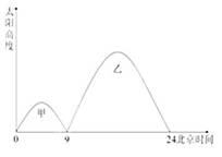 4、单选题  该图是甲、乙两地北半球夏至日太阳高度日变化图,读图回答问题。