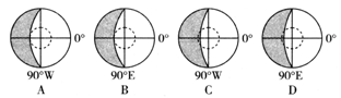 小题3:P为冬至日,根据图示经度变化可判断自转方向,顺着自转方向东经度数增加,西经度数减小,故A图为逆时针自转,即为北半球,北极圈内出现极昼,为北半球夏至日;B图自转方向呈顺时针,为南半球,南极圈内出现极昼,即为北半球冬至日;C、D图晨昏线与极圈相交,不可能为冬至日。