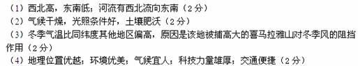 (2)图中H是该国经济作物棉花的分布区,请分析该地棉花生长的有利的自然条件。