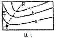 3、单选题 读图1,三条等值线的数值关系为a>b>c,据此完成问题。