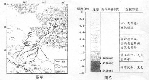(2)图乙所示地层,埋藏越深,距今年代越久远;深度1.6米处是?沉积,由此可推断该地的干湿状况——距今5000年前后比现在?,理由是?。(8分)