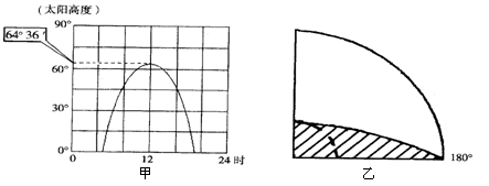 (1)甲图是某地(48°50′N)的太阳高度随时间变化图。此图所示日期应是_?_日前后。此时,北半球昼夜长短的状况是_____?_____;正午太阳高度达全年最大值的纬度范围是__?______。此时地球公转到_____(近、远)日点附近。(共8分)