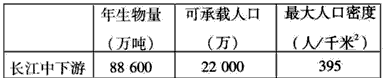 5、单选题 读长江中下游与青海、西藏地区土地生产潜力和最大人口密度表,回答1—3题。