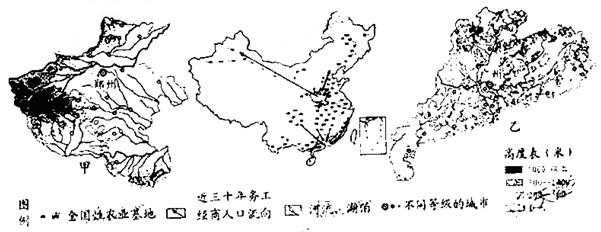 (1)甲省很多河流不利于发展河运。请你结合图中信息说明两条自然原因