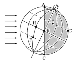 (3)图中各点中,与D自转线速度相同的是 点、 点;与C点地方时相同的是 点;与B点昼夜长短相同的点是 点;出现极昼现象是 点;正午太阳高度最大的是 点。