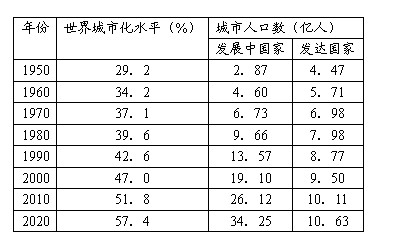 4、单选题 读二战后世界城市化进程表格,回答1~3题。