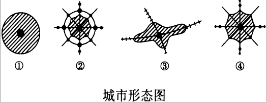 1、单选题 下面四幅城市形态图是在不同的交通运输工具下形成的。读图完成1~2题。