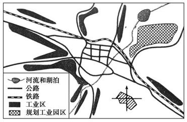 5、综合题 下图为我国华北地区某城市工业区分布示意图,读图回答下列问题。