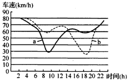 A、a曲线反映8~10时汽车流量较小,道路畅通