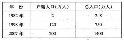 2、单选题 下表为“我国南部沿海某城市人口增长统计资料”。