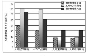 1、单选题 下图表示我国某城市2008年部分人均用地状况。读图,回答小题。