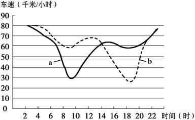1.图中a、b两曲线2.下列时段中,此干道空气污染最严重的是