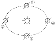 4、单选题 左图中阴影部分表示黑夜。读图,回答问题。