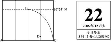 5、综合题 下图中AC为赤道,BC为晨昏线的一部分,根据日历信息,读图后回答问题。