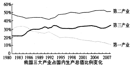 (3)从图中看1980年我国产业结构比重由大到小依次是____、____、____,2007年我国产业结构比重由