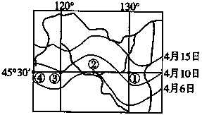 1、图中①、②、③、④四地积雪融化完毕日期最早的是