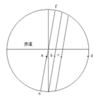 1、单选题 图中a、b、c、d四点位于同一纬线上;abc三点所在斜线为地球上某日部分等太阳高度线,a、b、c三线太阳高度相差10?,ef为晨线,e点经度是60°E。读图回答下列各题。