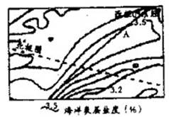 【小题1】图中等盐度线自近岸向远洋变化的趋势是 ( )