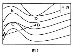 2、单选题 读“某风景区等高线图(单位:米)”,完成下题。