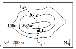 5、单选题 读“我国东部某地(30°N)某座山峰的等高线示意图(单位:米)”,甲乙两地为两处风景点,沿虚线L1坡度为45°,沿虚线L2坡度为30°,回答下列小题。
