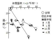2、单选题 读下面北半球、南半球和全球月均温与冰雪覆盖面积对应值的分布图。回答问题: