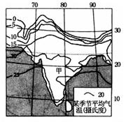 点评:本题有一定难度,能抓住图示的等温线分布进而判断气温高低、温差等信息是解题的关键,注意结合南亚的季风气候的基本特征和利用太阳直射点的位置判断正午太阳高度和昼夜长短分布等内容分析。