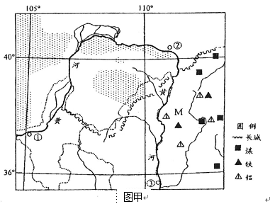 (3)根据图中M省矿产资源状况,推断其主要工业部门并简述工业发展可能造成的环境问题。(10分)