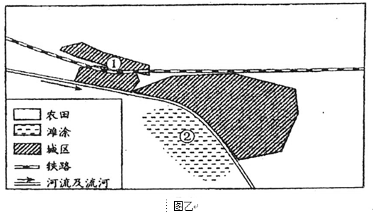 (4)该城规划建设一大型重工业开发区,你认为在①、②两地中哪一地建设更合理。试说明理由。(4分)