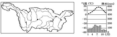 材料二?下图为长江流域水系图及流域内主要气候类型气温降水资料。