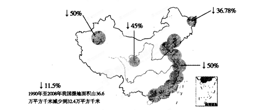 (2)据图分析我国湿地面积减小的主要原因。(6分)