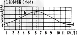 2、单选题 下图为150°W 某地全年白昼小时数曲线图。读图回答1-2 题