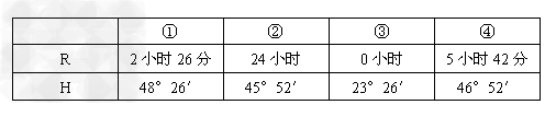 下表是四地一年中昼长最大差值(R )和正午太阳高度最大差值(H )资料,据此回答1-3 题。