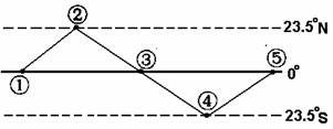 1、单选题 2010年10月1日18时59分57秒“嫦娥二号”在西昌卫星发射中心发射升空。该图为太阳直射点周年变化示意图,回答问题。