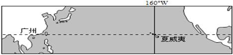 5、单选题 广州(113°E)的陈先生到纬度大致相同的夏威夷(156°W)休假,飞机在北京时间5:30从旭日东升的当地机场起飞,降落到夏威夷时正值日落。回答下列问题。
