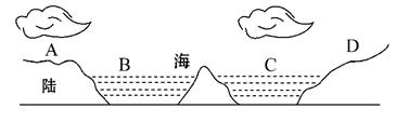 1、单选题 下图中A、B、C、D四地,昼夜温差最小的是( )
