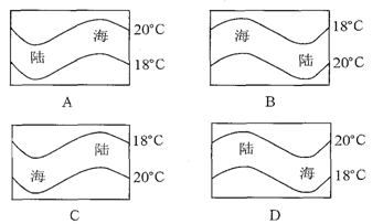 本题解析:全球气温分布规律是由赤道向两极递减。由此可判断B、C为北半球,A、D为南半球;北半球夏季陆地增温快,气温高于海洋,由此可判断C正确。