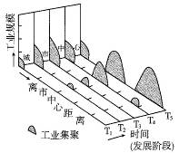 4、单选题  读“某城市工业集聚规模随时间变化示意图”,回答23~25题: