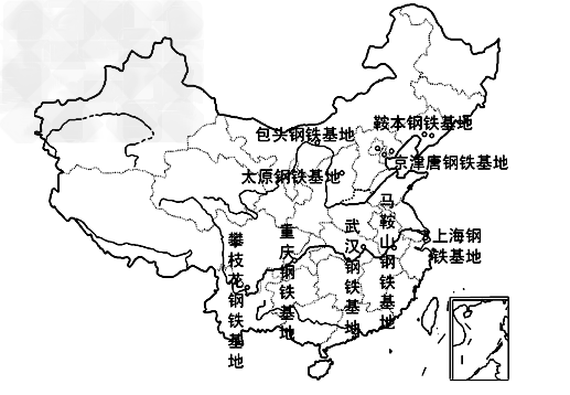 1、单选题 读我国九大钢铁基地分布示意图,回答1-2题。
