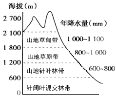 1、单选题  下图是我国东部某山地地形剖面图及自然带垂直分布图,读后完成1—2题。