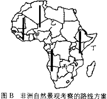 1、能够观察到图A所示自然景观变化现象的考察线路是